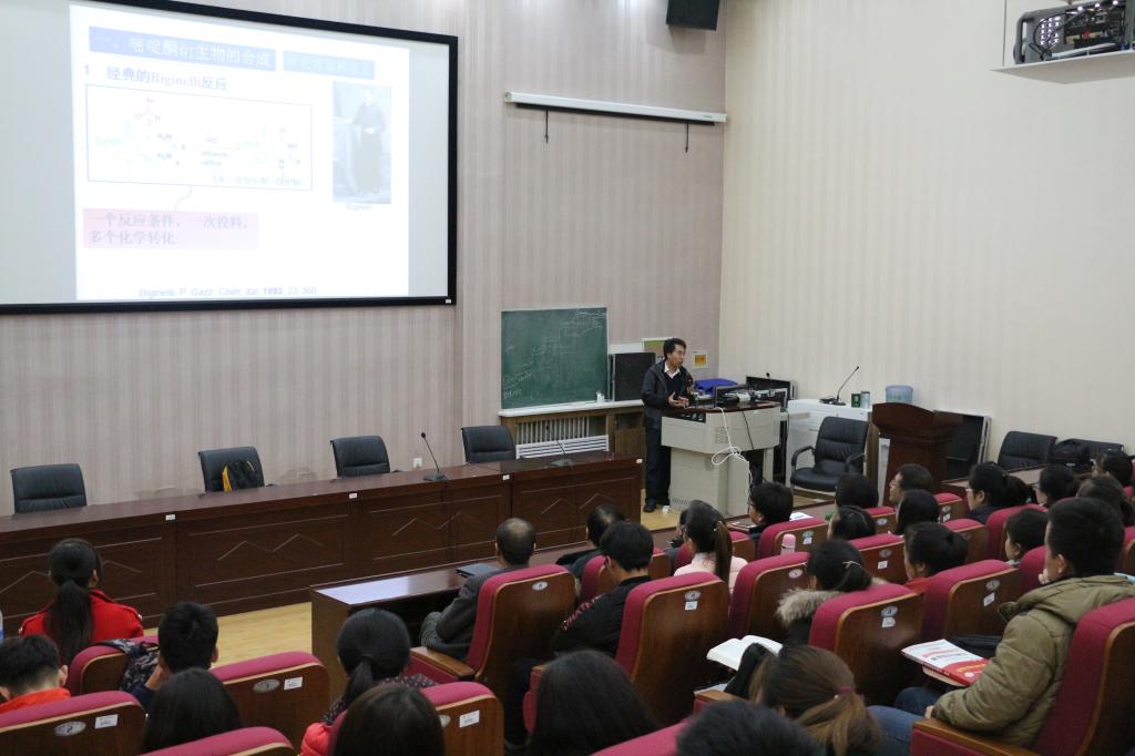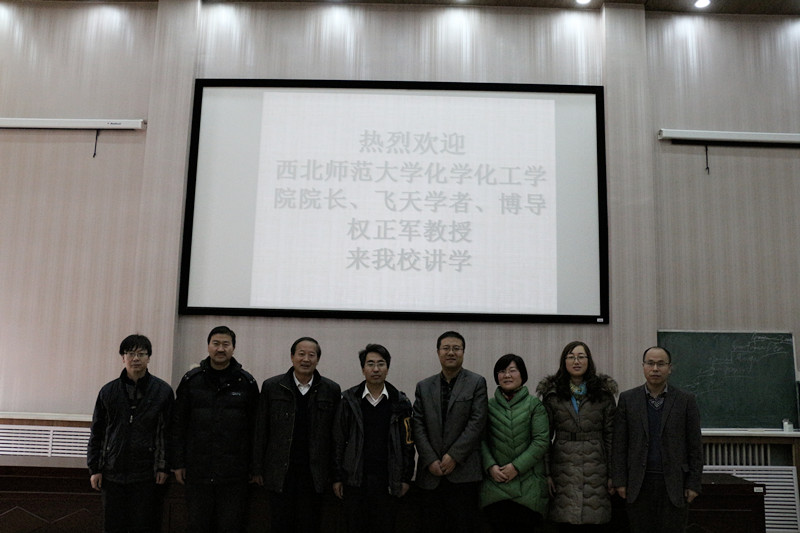 2016年12月5日西北师范大学化学世界杯8833300足球现主持工作领导、甘肃省“飞天学者”特聘教授、甘肃省教育学会化学教学专业委员会副理事长、博士研究生导师权正军教授,在公司四号报告厅向世界杯8833300足球师生做了题为《含硫氮杂环化合物参与的偶联反应研究》的学术报告。