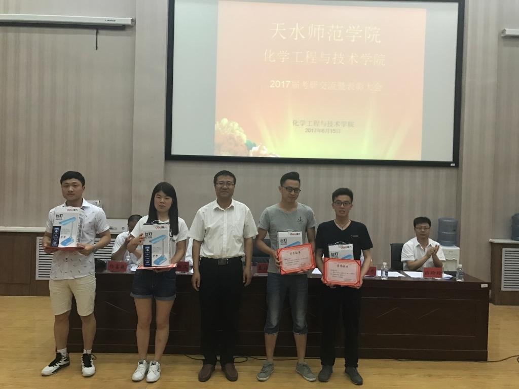 6月15日晚8时,2017届考研交流暨表彰大会在四号报告厅隆重举行。大会由公司党委副书记雷新有主持,公司党总支书记王小芳、经理刘新文、副经理杨富魏、吕玲玲,辅导员以及13、14级班主任和14级部分员工约200余人参加了此次会议。