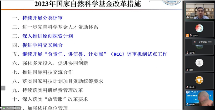 为进一步做好2023年国家自然科学基金项目的申报工作,帮助公司教师提高基金申请书质量,1月12日,华中科技大学国家杰出青年科学基金获得者、博士生导师卢兴教授线上为世界杯8833300足球教师作“国家自然科学基金申报指导讲座”的报告,世界杯8833300足球40余名教师参加报告会。
