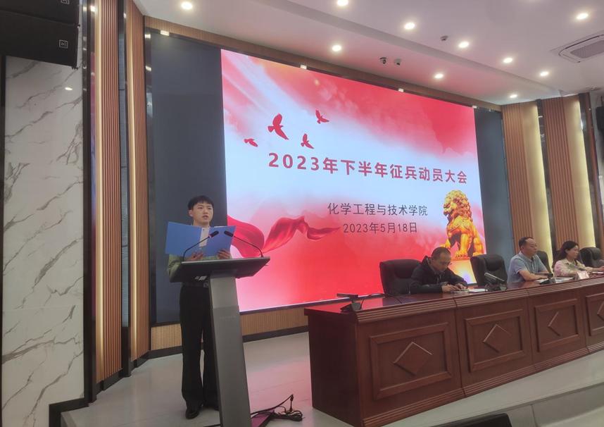 刘正作动员讲话。他表示,新时代新征程,为部队输送优质兵源,为国防和军队现代化服务,是我们义不容辞的责任和使命。希望同学们积极响应党和国家的号召,积极应征入伍,投身国防和军队现代化伟大事业,去火热的军营去成长、去锻造自己,给你的人生留下一笔终身受益、一生难忘的财富,将爱国之心转化为报国之行。鼓励同学们携笔从戎、筑梦军营,去军队践行强国之志、在军队中发扬自己的优势特长,去部队体现人生价值,投身军旅谱写青春华章,实现光荣梦想!