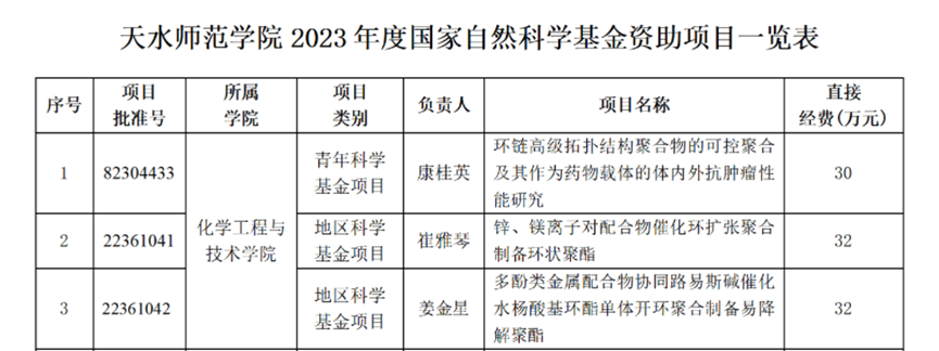 国家自然科学基金青年科学基金项目——环链高级拓扑结构聚合物的可控聚合及其作为药物载体的体内外抗肿瘤性能研究: /info/1145/2891.htm