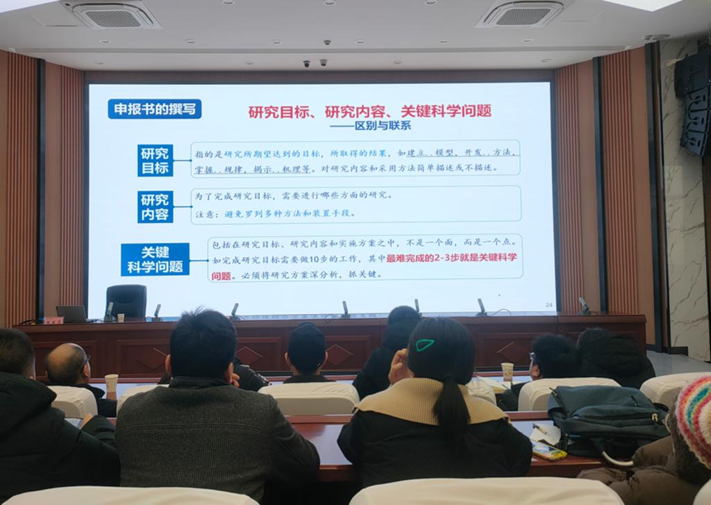 2024年12月30日,西北工业大学国家杰出青年基金获得者应邀来校作题为《国家自然科学基金申请与评审的一点体会》的专题讲座。报告会上,分享了自己及团队的国家级科研项目申报历程,深入浅出地传授了申请书题目、摘要、立项依据、研究目标、研究内容和研究方案等部分的写作方法和技巧。同时,还分享了评审专家在审核过程中的关注点和常见问题,为公司教师提供了宝贵的参考意见,使与会教师对基金申请的评审标准和要求有了更深入的认识。同时,建议教师们要多积累、多交流、多听意见,并主动送同行预审,不断提高项目申报质量。讲座结束后,对老师们所提的问题进行了详细解答。